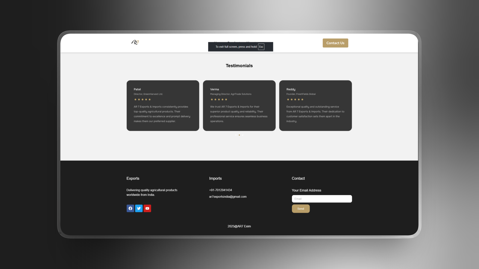 A business website designed to strengthen export credibility and present global trade services with clarity.