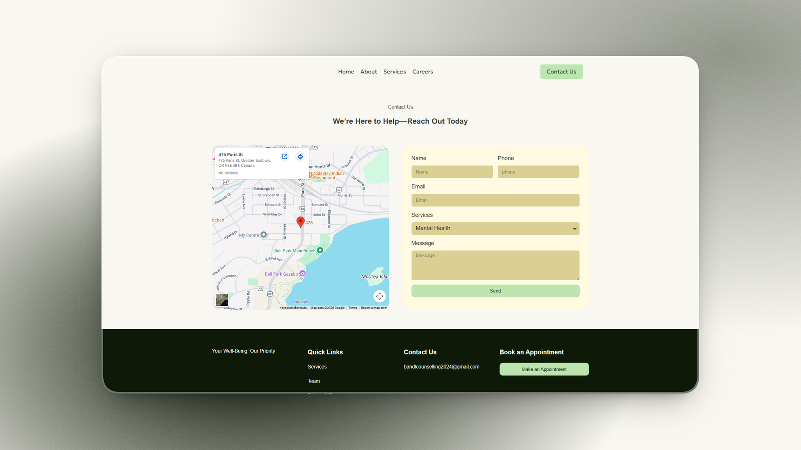 The project required a calm and trustworthy digital experience that could communicate counselling services clearly while making visitors feel comfortable enough to connect. The challenge was balancing emotional trust, service clarity, and enquiry accessibility in a clean professional layout.